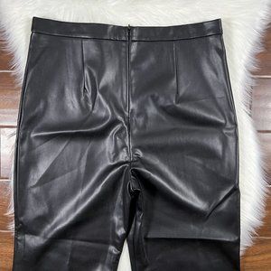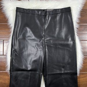Sleek black flare pants. Smooth leather-like finish. Perfect for stylish outings.