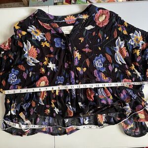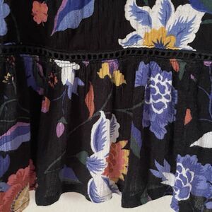 Anthropologie Black Floral Josie Dolman Sleeve Top XSP Crepe Boho Peasant Flowy