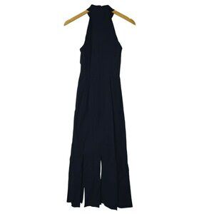 Anthropologie Black Halter Dress Slit Legs XS Black Witchy Goth Romantic Goth
