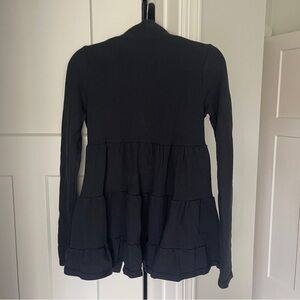 Anthropologie Black Lila Tiered Babydoll Ruffled Back Open Front Cardigan