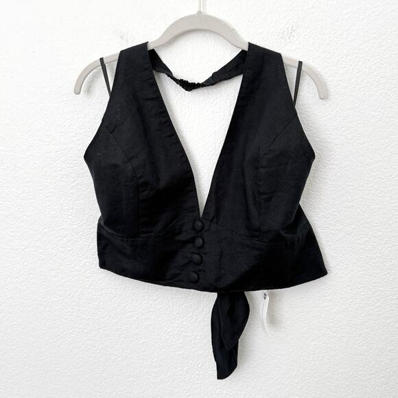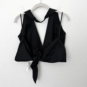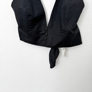 [Anthropologie] Black Linen Blend Retro V-Neck Halter Crop Tank NWT Size Large L