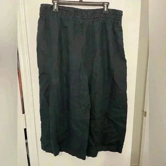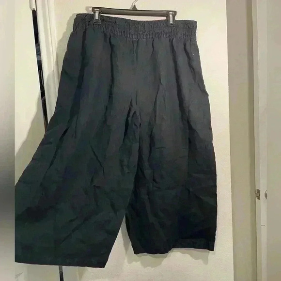 Anthropologie Black Linen Wide Leg Cropped Pants Womens Size XLP
