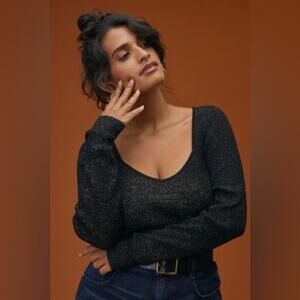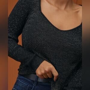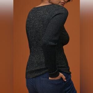 Anthropologie Black Metallic Pullover Sweetheart Sweater Size Medium