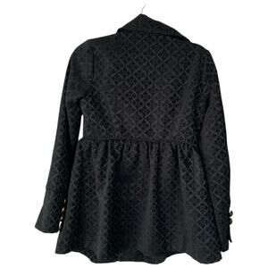 Elegant black jacket with a subtle pattern. Features stylish button details. Perfect for a chic look.
