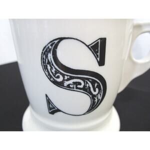 Anthropologie Black Raven Letter S Initial Monogram 12 oz Footed Coffee Mug