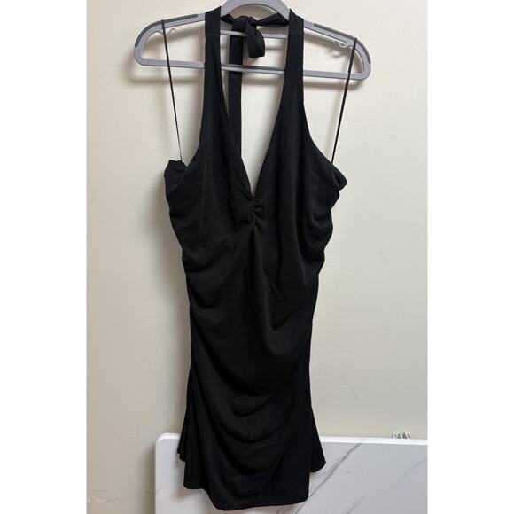 Anthropologie Black Ruched Halter Mini Dress Women’s XL NWT