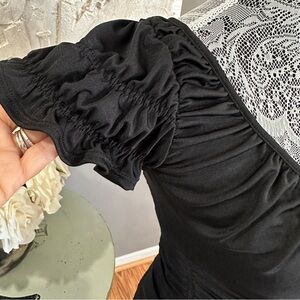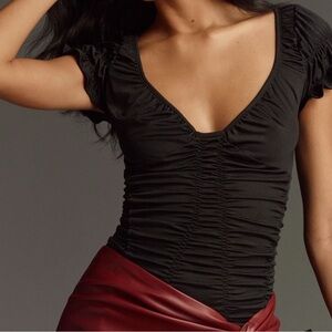 Anthropologie Black Ruched V-Neck Bodysuit Size Medium