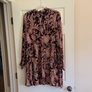 This Anthropologie dress features a striking Black & Rust design perfect for casual or work settings. The long bishop sleeves and mock neck add a touch of elegance to its sundress style, while the mandarin collar enhances its sophisticated appeal.
