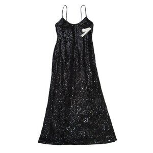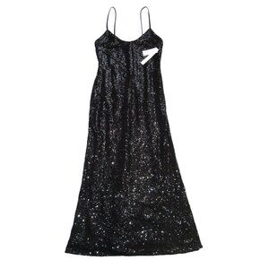 Elegant black sequin dress. Spaghetti straps. Perfect for evening wear.