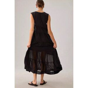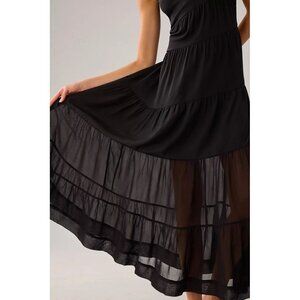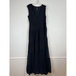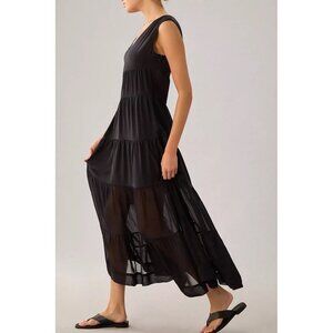 Anthropologie Black Sleeveless Tiered Silk Maxi Dress Size 10 New Boho Beach