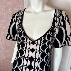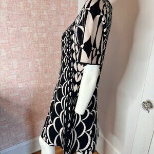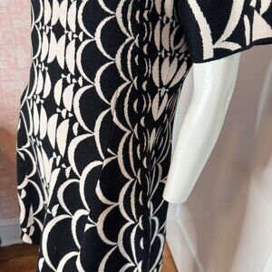 Anthropologie Black & White Geometric Knit Jacquard Mini Dress sz Large