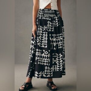 Anthropologie Black & White Patterned Maxi Skirt in excellent condition, looks like new. Smocked waist, full skirt, lined, has pockets. Geometric pattern. Runs generous.