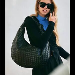 Anthropologie Black Woven Hobo Bag with Gold Chain