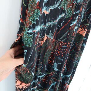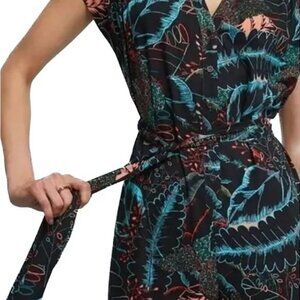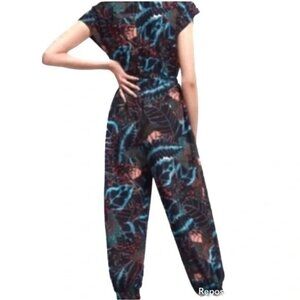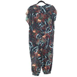 Stylish jumpsuit with a vibrant floral pattern. Features a flattering V-neck and cap sleeves. Perfect for any occasion.