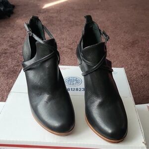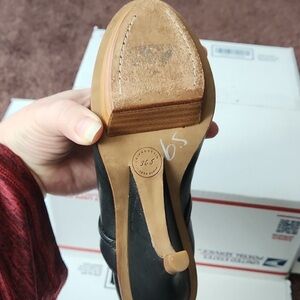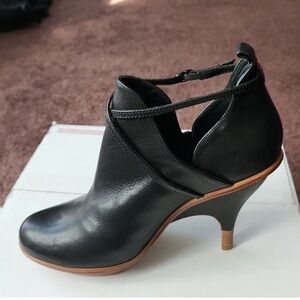 Anthropologie Black and Brown Heeled Boots with Elegant Stiletto