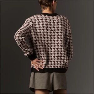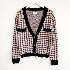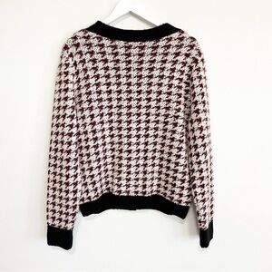 Chic houndstooth pattern. Button accents. Cozy and stylish.