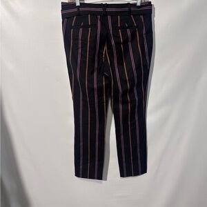 These Anthropologie pants showcase a chic cropped ankle design in a striking black and purple color palette. With a tailored fit, they offer a sophisticated look that effortlessly combines style and comfort, perfect for elevating any ensemble.