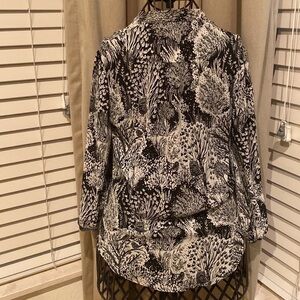 Anthropologie HD in Paris black and white ruffle Pacea top with blue buttons. Excellent condition.
