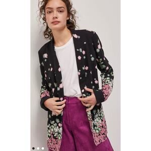 Anthropologie Black with Flowers Merielle Kimono Blazer size 8 NEW