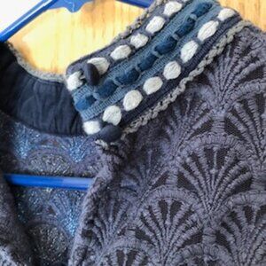 Anthropologie Blank London Boho Dark Blue Textured Collared Sheer Blouse Small