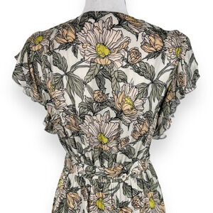 Anthropologie Blank London Dress Womens XS Gray Floral Flounce Maxi Wrap