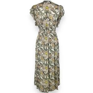 Anthropologie Blank London Dress Womens XS Gray Floral Flounce Maxi Wrap