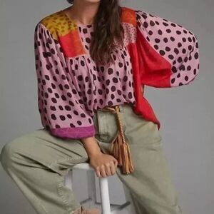 Anthropologie Blank London Miranda Peasant Blouse, Multicolor, Size L