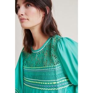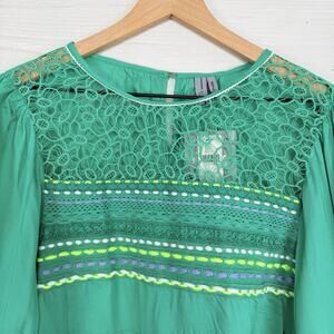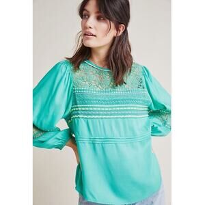 Anthropologie Blank London Size S Sunshine Peasant Blouse Green Boho Embroidered