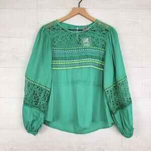 Add a touch of boho-chic charm to your wardrobe with this Anthropologie Blank London “Sunshine” Peasant Blouse in vibrant green.