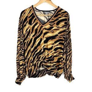 Anthropologie Blank London Top Size Small Patrice Animal Print Shirt V Neck