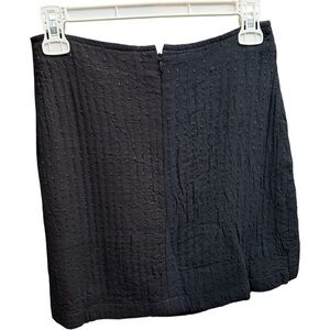 Black Bl^nk London textured mini skirt in size Small from Anthropologie. Features vertical puckered fabric, a straight cut, and a hidden back zip. Lightweight and fully lined.