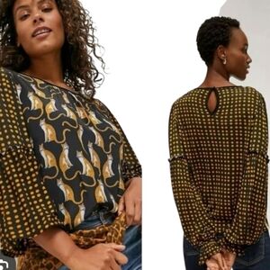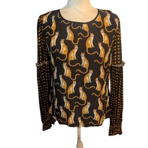 Anthropologie Bl-nk London Brienz Leopard Cat Print Long Sleeve Top XS