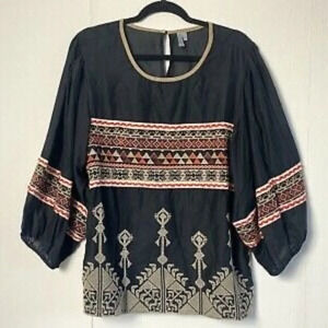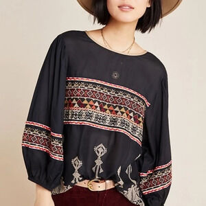 Anthropologie Bl-nk Nina Embroidered Blouse Small