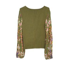 Anthropologie Bl-nk Printed-Sleeve Sweater Top Green Motif - Medium