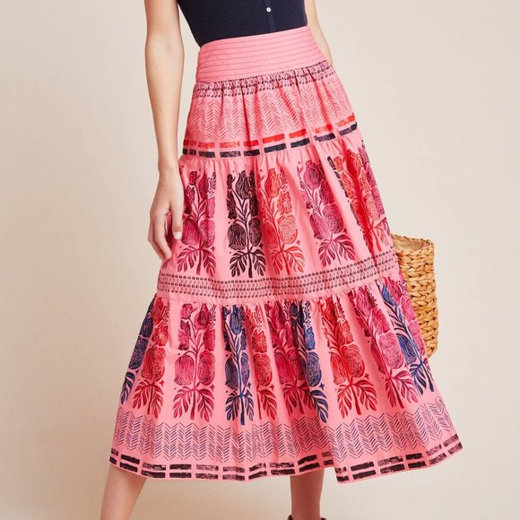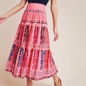 Anthropologie Blooming Print Auberte Tiered Skirt