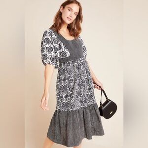 Anthropologie Blooming print Adrienne Flounced Cotton Floral Midi Dress NWT