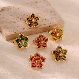 Elegant multicolor floral ring with a gold finish. Perfect for adding a touch of color to any outfit.