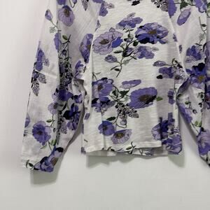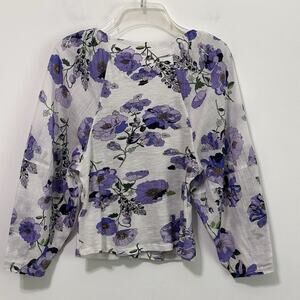 Anthropologie Blouse S V Neck Ruched Purple Floral Ballon Sleeve Boho Summer Top