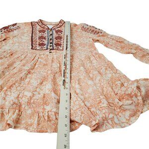 Anthropologie Blouse XSP Orange Claudia Embroidered Babydoll Tunic Top Boho