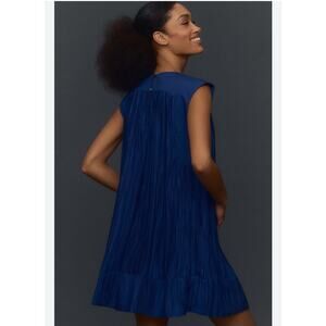 Anthropologie Blue Cap Sleeve Plisse Pleated Mini Dress Woman’s Size Small NEW