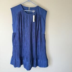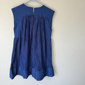 Anthropologie Blue Cap Sleeve Plisse Pleated Mini Dress Woman’s Size Small boxy NEW