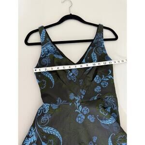 Anthropologie Eva Franco Blue Green Embroidered Brocade Jacquard Floral Botanical Fit & Flare V-neck Sleeveless Tank Short Mini Dress 0