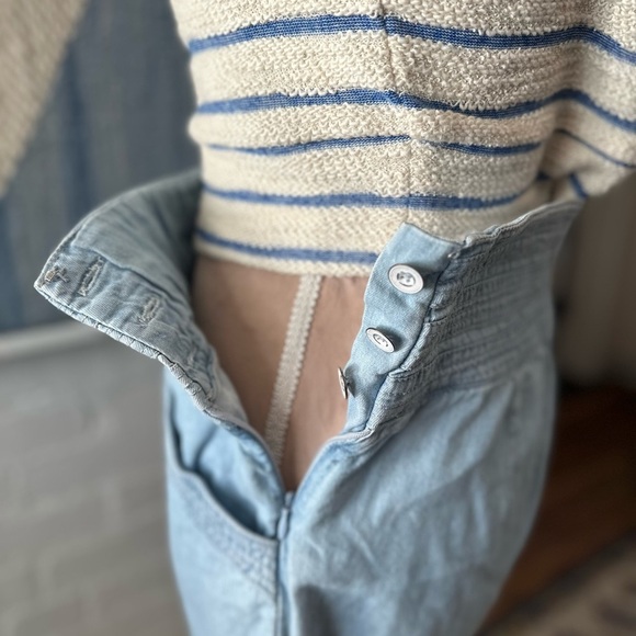 Anthropologie Blue Lightweight Chambray Shorts with Side Button Detail