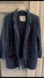 Pockets in front and tulip style back for freedom of movement. Decorative buttons at cuffs. Blue. Good condition.