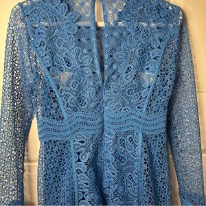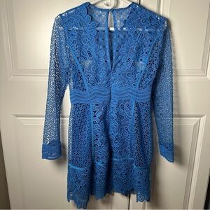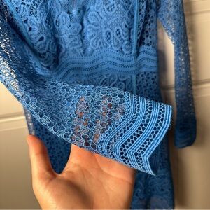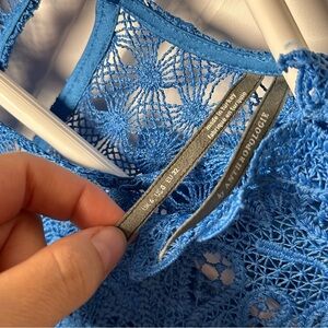 Anthropologie Blue Mini Dress Long Sleeve Eyelet Crochet Vibes Size 0