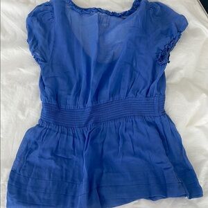 Anthropologie Blue Puff Sleeve Smocked Blouse