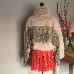 Anthropologie x Blue Revival Fringe Fur Bomber Jacket Coat.