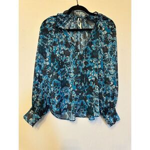 Anthropologie Blue Sheer Printed Peasant Blouse Size XS