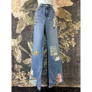 Anthropologie Blue Straight Leg Jeans with Embroidered Details Size 28 Tall