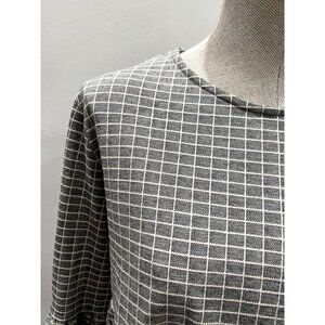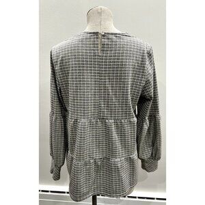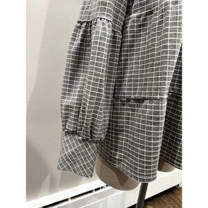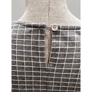 Anthropologie Blue Tassel Windowpane Checkered Top in Gray Size L